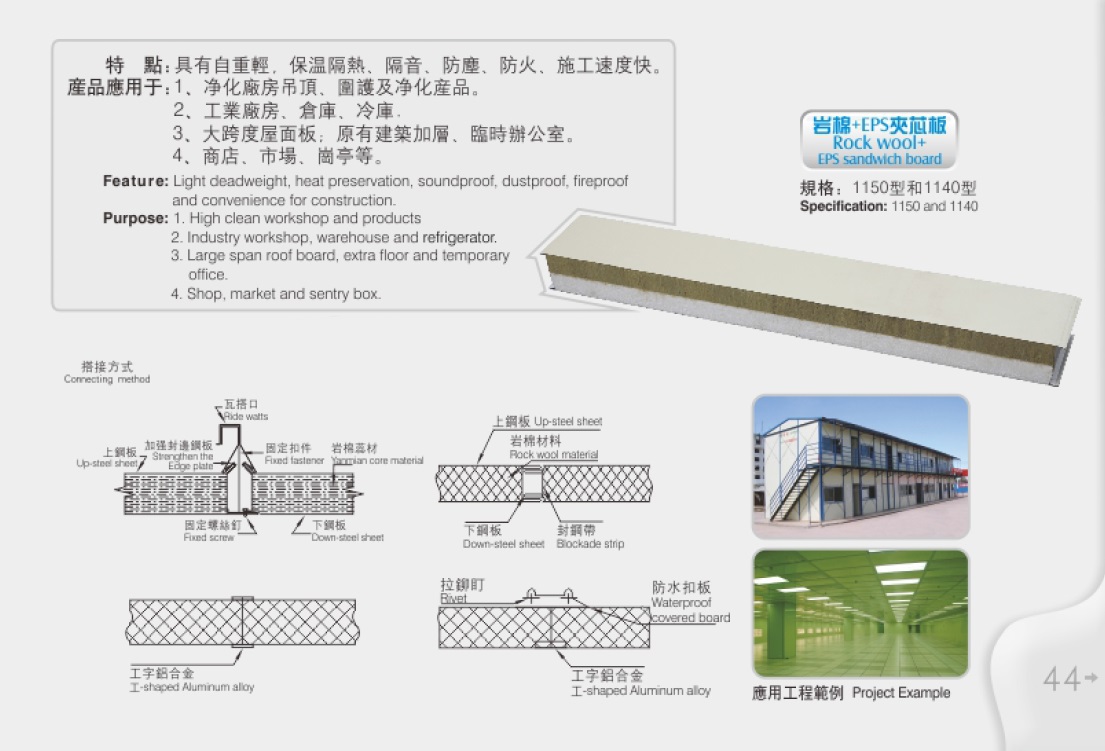 應用範圍:組合屋、儲物櫃、玻璃屋及廠房屋面、牆身、地面及所有內牆企身間格等
